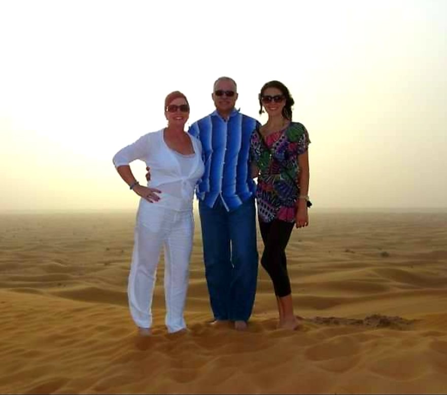 Consider a day trip – we went on a really fun Desert Safari Tour. I don’t know when we’ve laughed more. We really enjoy an exhilarating drive over huge red and gold sand dunes, camel rides and a Bedouin Camp for an evening feast while being entertained by belly dancers. Our daughter Kelsie got “temporary” henna there that is very popular in the UAE.